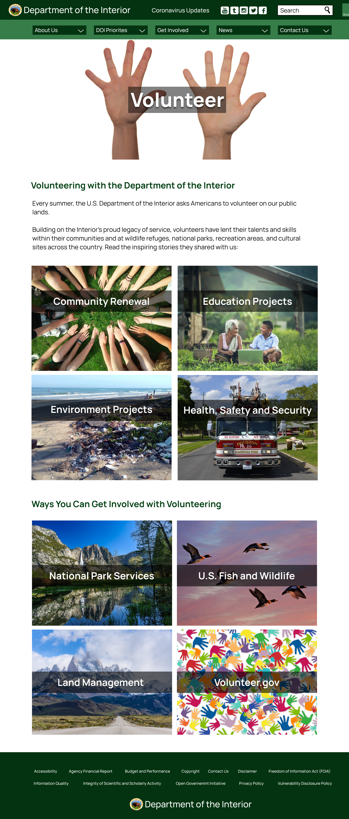 Utilizing responsive design, the mobile version of the Department of the Interior website was created.