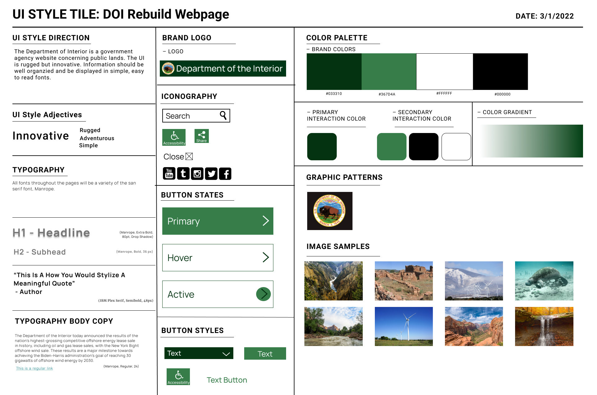 The Department of the Interior (DOI) lacks a user-friendly navigation system and requires a cohesive and updated brand identity.
